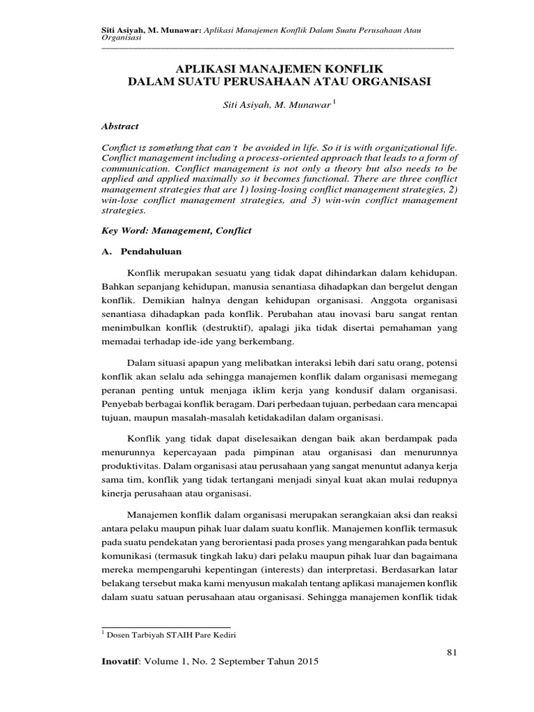 Dinamika konflik dalam organisasi lecture note: Organisasi ini berhasil dibentuk oleh para pemuda yang berasal dari kalangan siswa menengah atas. 10 metode penyelesaian konflik (conflict resoluting methods) pemecahan masalah secara menyeluruh (integrative problem solving) metode konsensus metode. Tujuan organisasi budi utomo adalah kemajuan jawa dan madura budi utomo merupakan organisasi pertama yang ada di indonesia dan disusun dengan bentuk modern. Organisasi merupakan salah satu tempat untuk berkumpul dan bekerja sama.